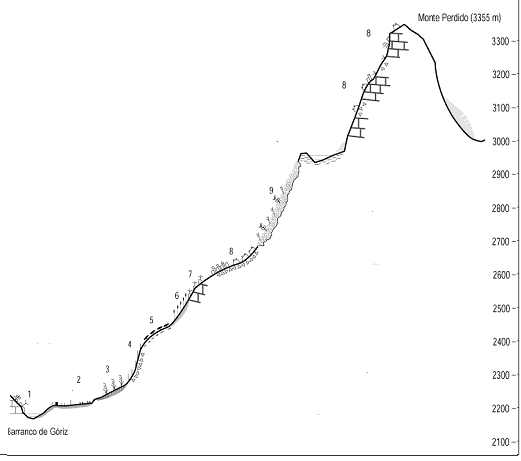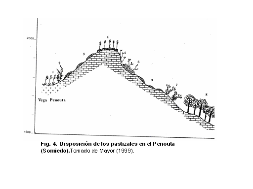 Fig.1. Esquema de la vegetación en la vertiente suroccidental del Monte Perdido