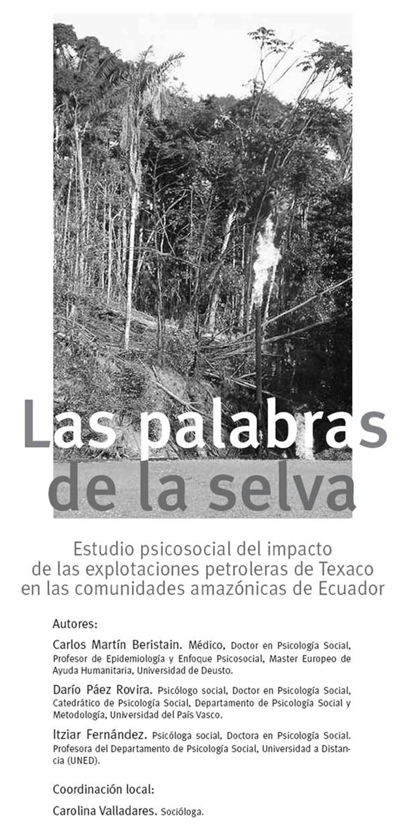 El moderador interviene: vamos a resumir la publicación de la Universidad del País vasco sobre los efectos negativos de las explotaciones petrolíferas de Texaco en Amazonas, los autores destacan los perjudiciales efectos sobre la salud de sus habitantes y la catástrofe ecológica. Lo que me parece mas interesante de su estudio es consignar las entrevistas que hicieron a los nativos de la zona. A demás de producirles en varias personas diversas enfermedades entre ellas el cáncer, los consecuencias medioambientales sobre la flora y la fauna fueron muy graves.