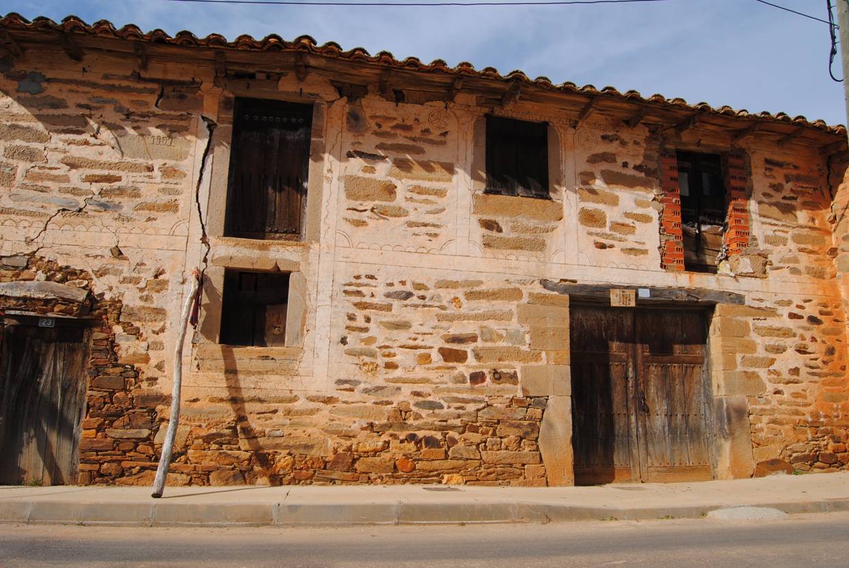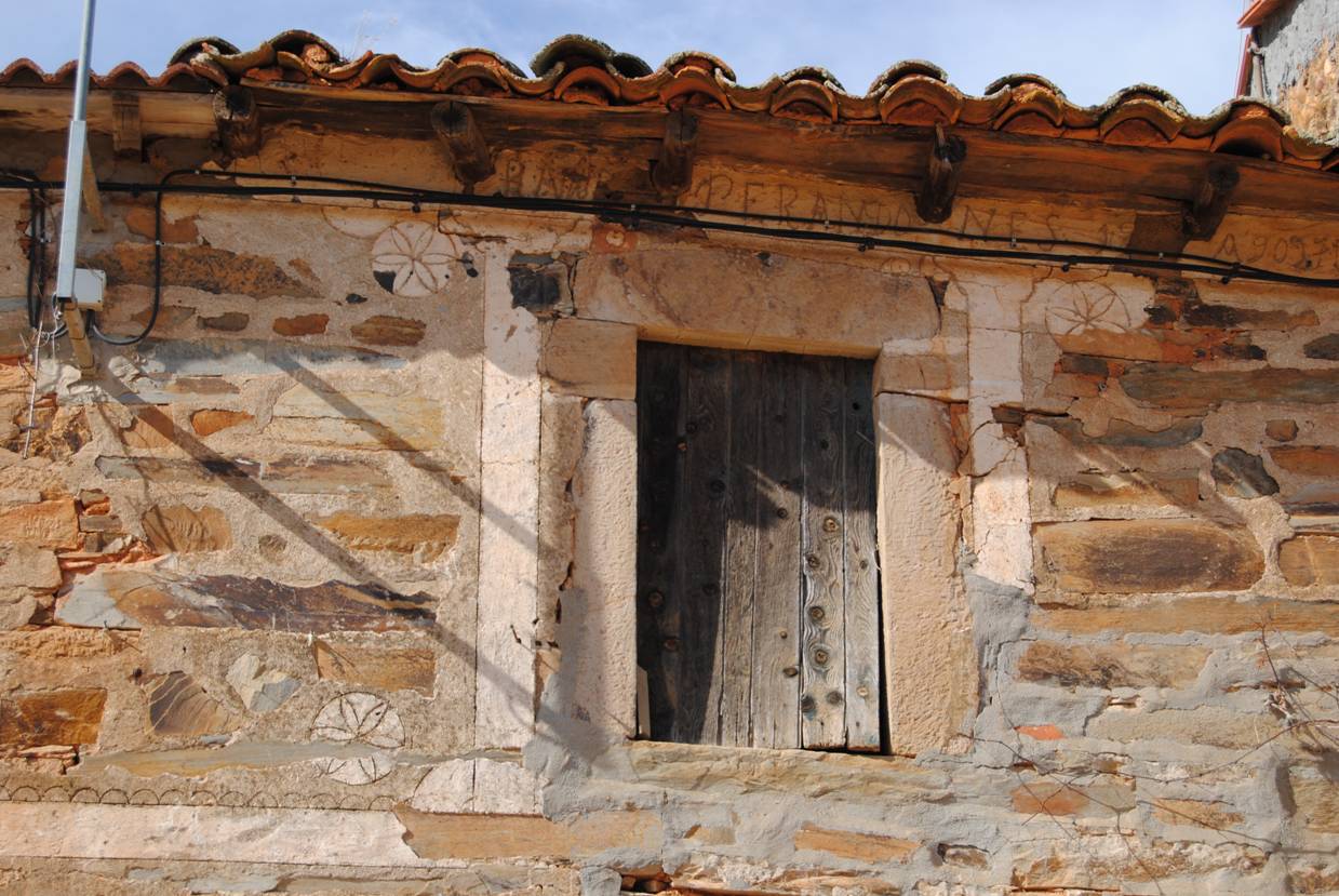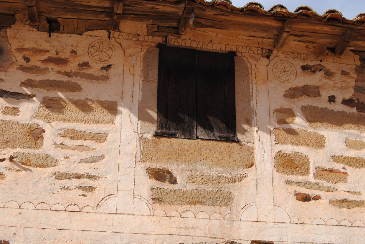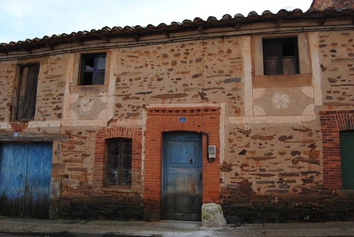 La fachada conserva unos dbujos en circulos y el nombre de Parendones