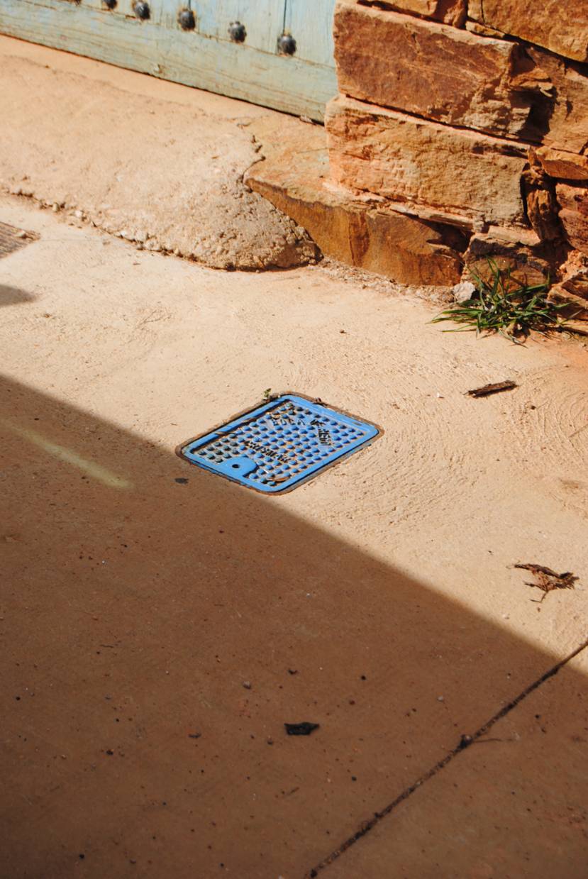 El azul en las puertas ventanas e incluso en la alcantarilla