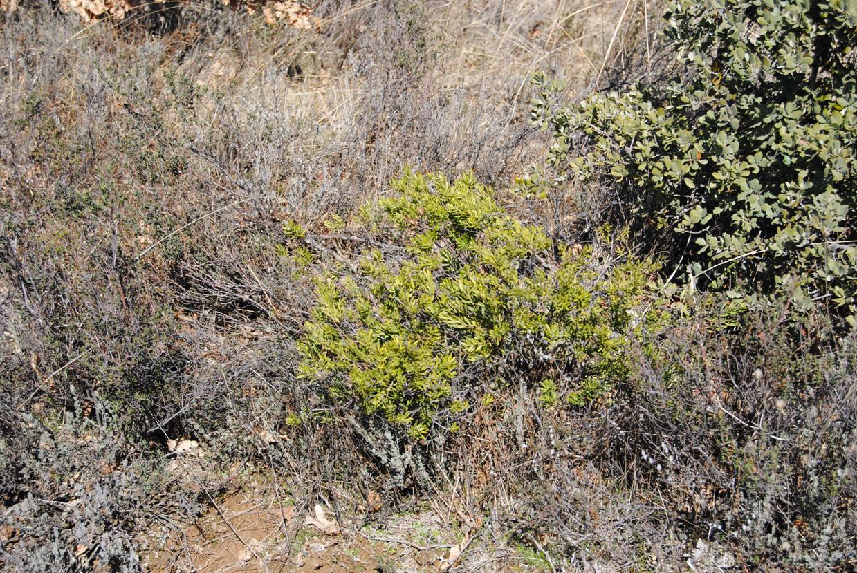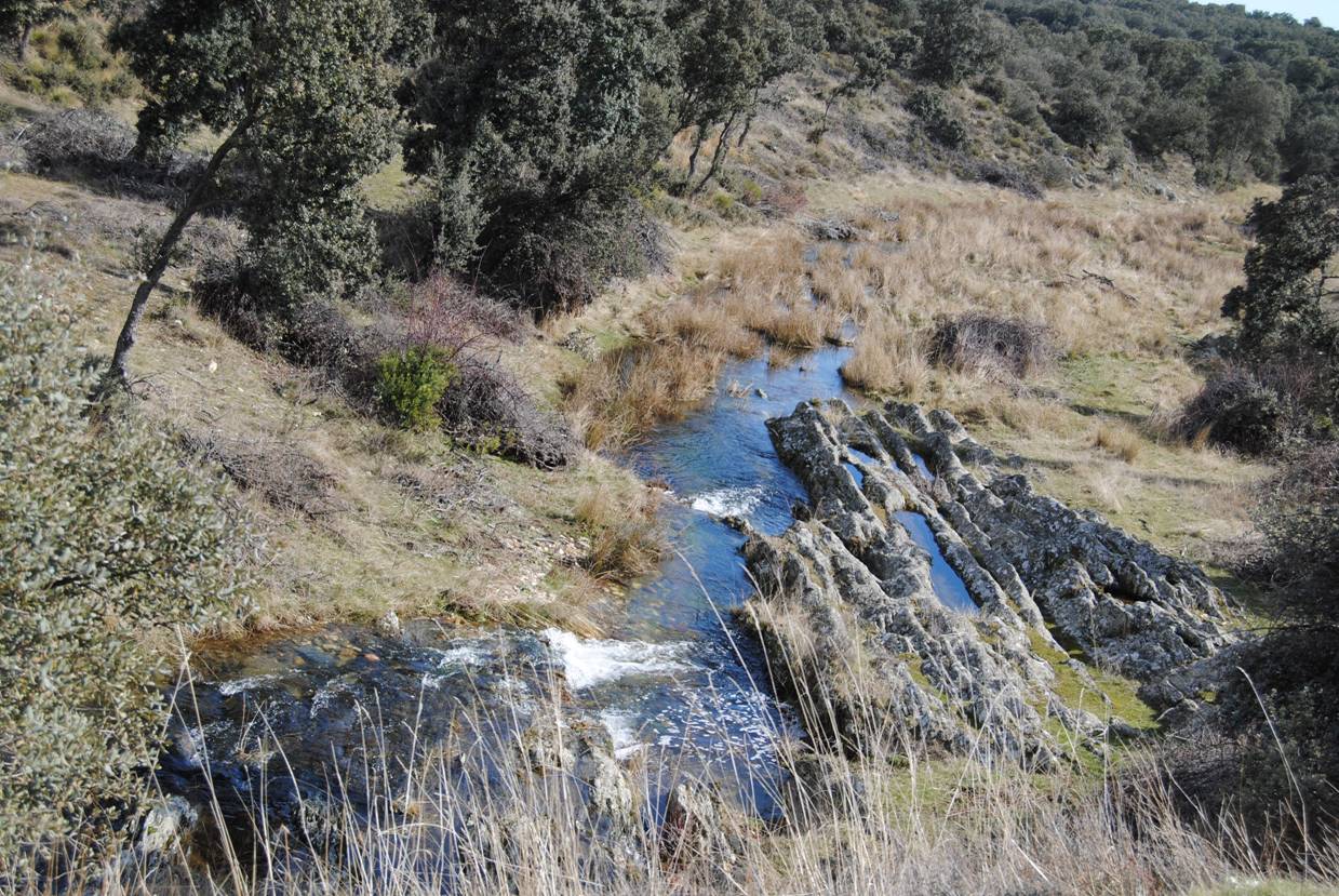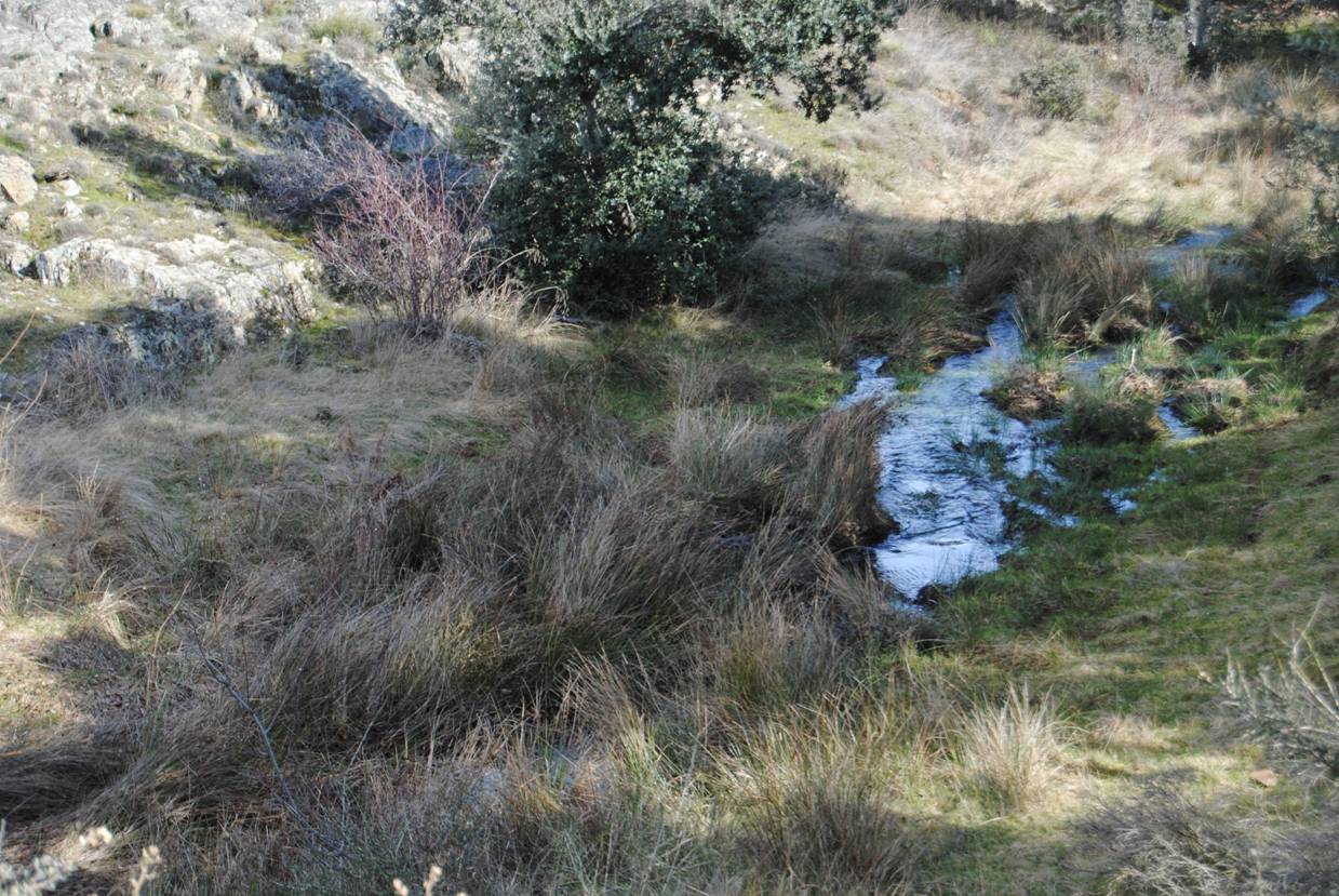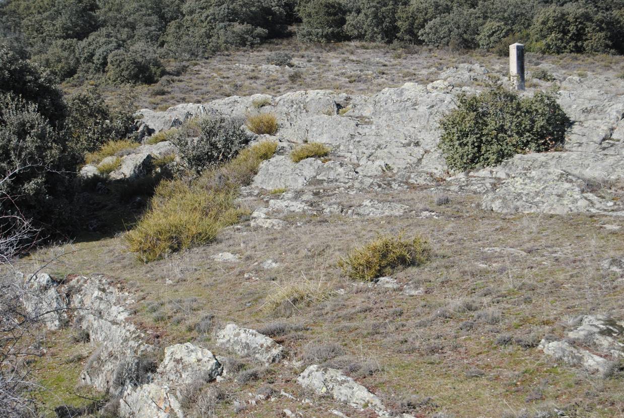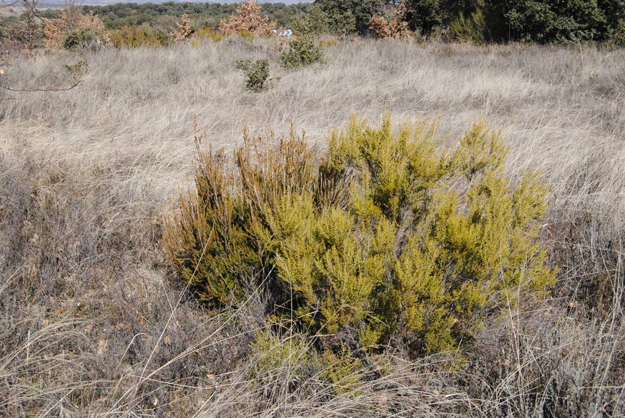 Disposición de la vegetación en un encinar de la Maragatería-Santiago Millas (León), Lat. 42º 23’ 2,40’’ N, Long. 6º 06’ 0,63’’ O, Alt. 921 m. A. Encinar con su orla de matorral (Quercus rotundifolia,, Genista hystrix, Lavandula stoechas), B. Pastizales anuales mediterráneos sobre sustrato ácido (Tuberaria guttata, Rumex acetosella, Corinephorus canescens, Ornithopus compressus, Lupinus angustifolius, Aira caryophyllea, Trifolium arvense, Evax carpetana, Logfia minima, Vulpia myuros, Arnoseris minima, Micropyrum tenellum, Agrostis castellana), C. Majadales silicícolas termo-mesomediterráneos (Poa bulbosa, Trifolium subterraneum, Molineria laevis)