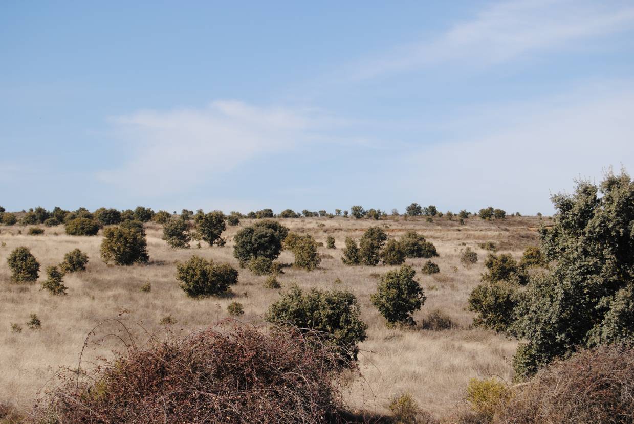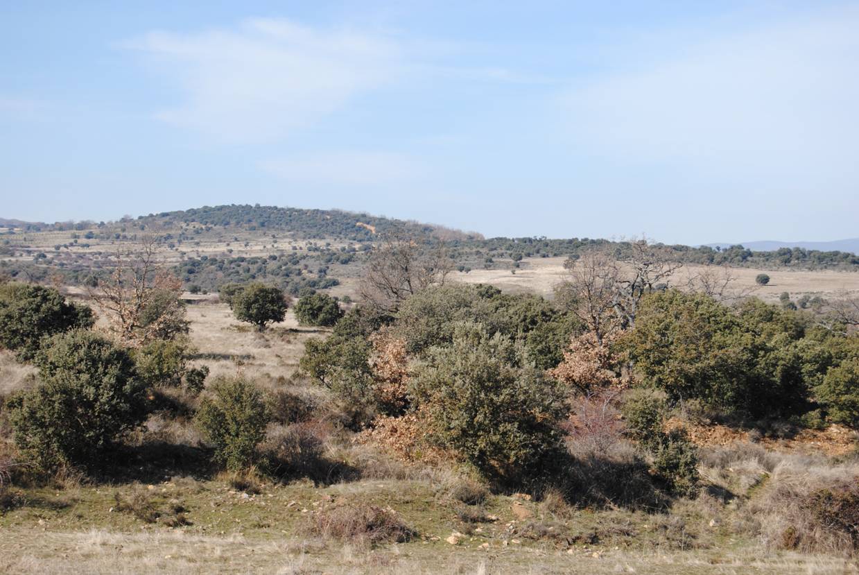 Paisaje típico de la maragatería con sus encinares intercalados con los pastos , piornales y brezales
