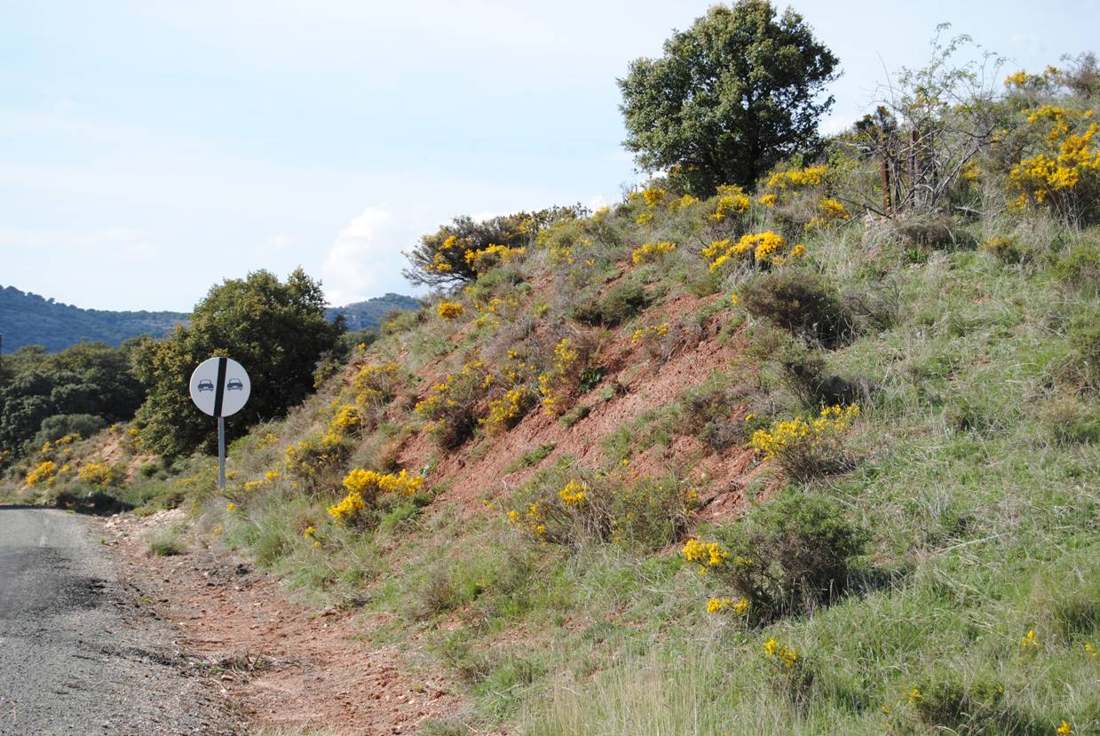 Paisaje tipico del zona, con encinas intercadas con piorno espinoso de flores amarillas