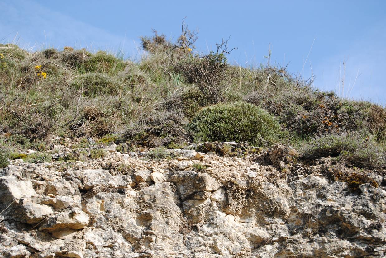 Típico aspecto de las formaciones en cojinete por la fuerte sopladur del viento en Somolinos, que Cuatrecasas llamó formaciones xeroacánticas o xeroacantetas.