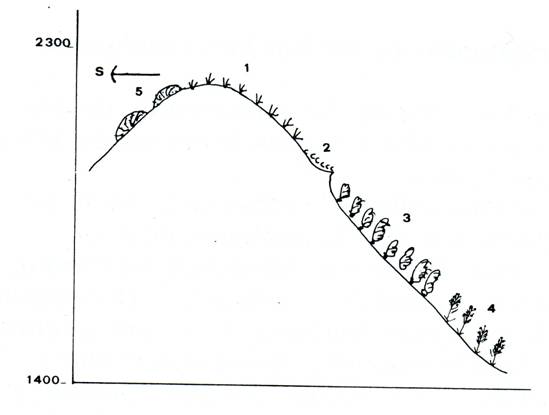 Disposición de los pastizales y matorrales en el Pico de Lobo (Sierra de