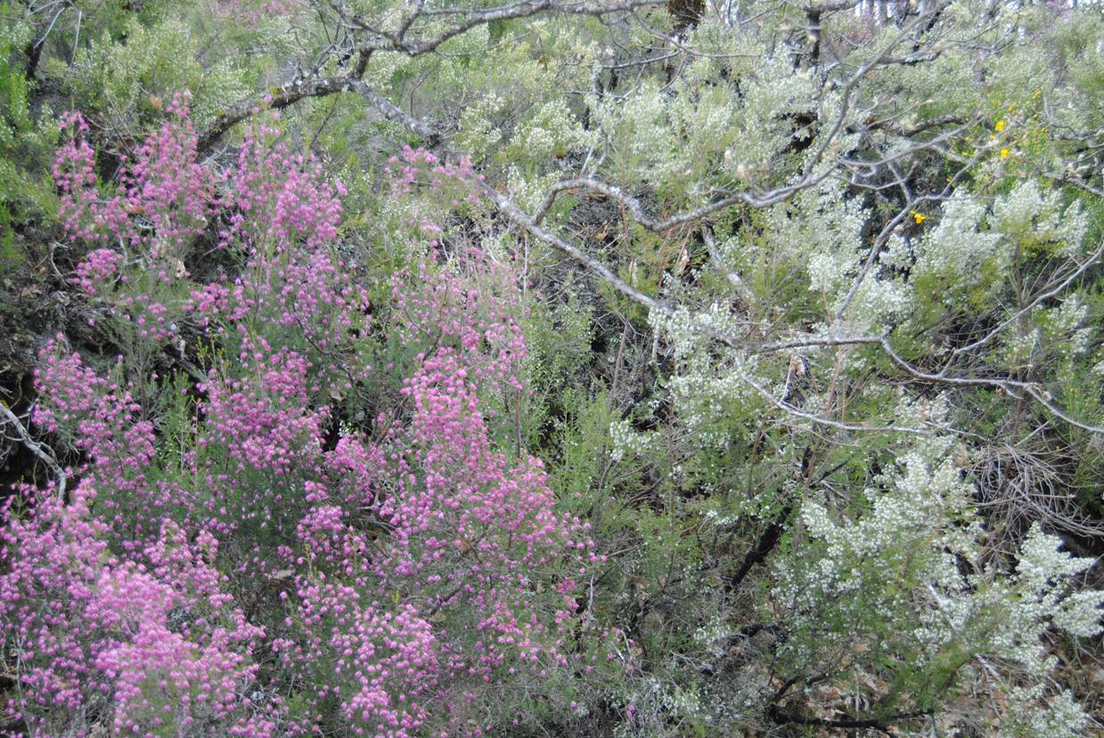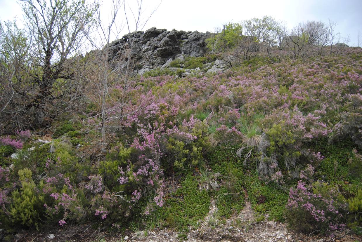 Brezo rosa tapizando los roquedos de la ladera
