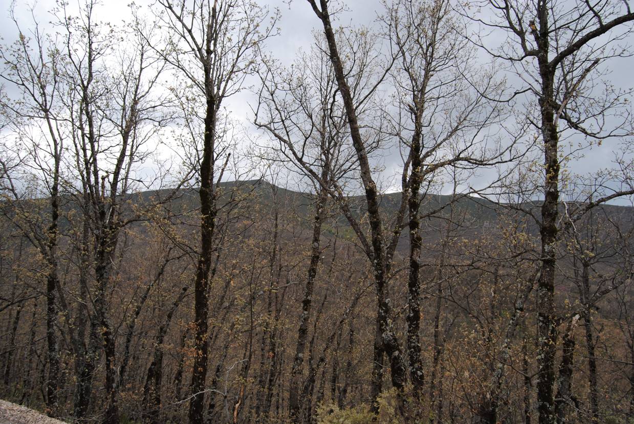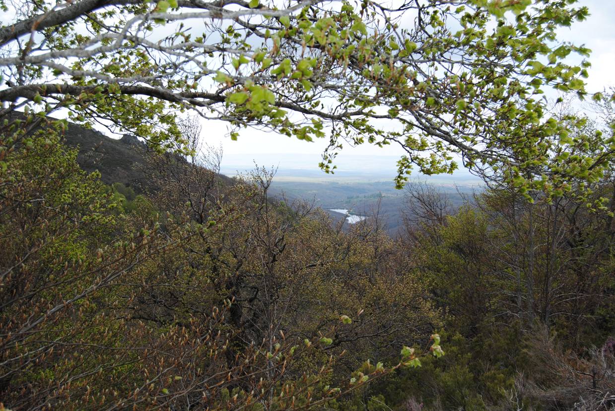 Ladera norte de la Sierra de Ayllón, en sus las laderas están rebrotando los robles y el haya y en las zonas más descarnadasse se situan los matorrales formados por brezos (Erica arborea con flores de color blanco y Erica aragonenis con flores rosadas) también se encontraba la gayuba en flor (Arctostaphylos uva–ursi) y el piorno amarillo (Cytisus scoparius).