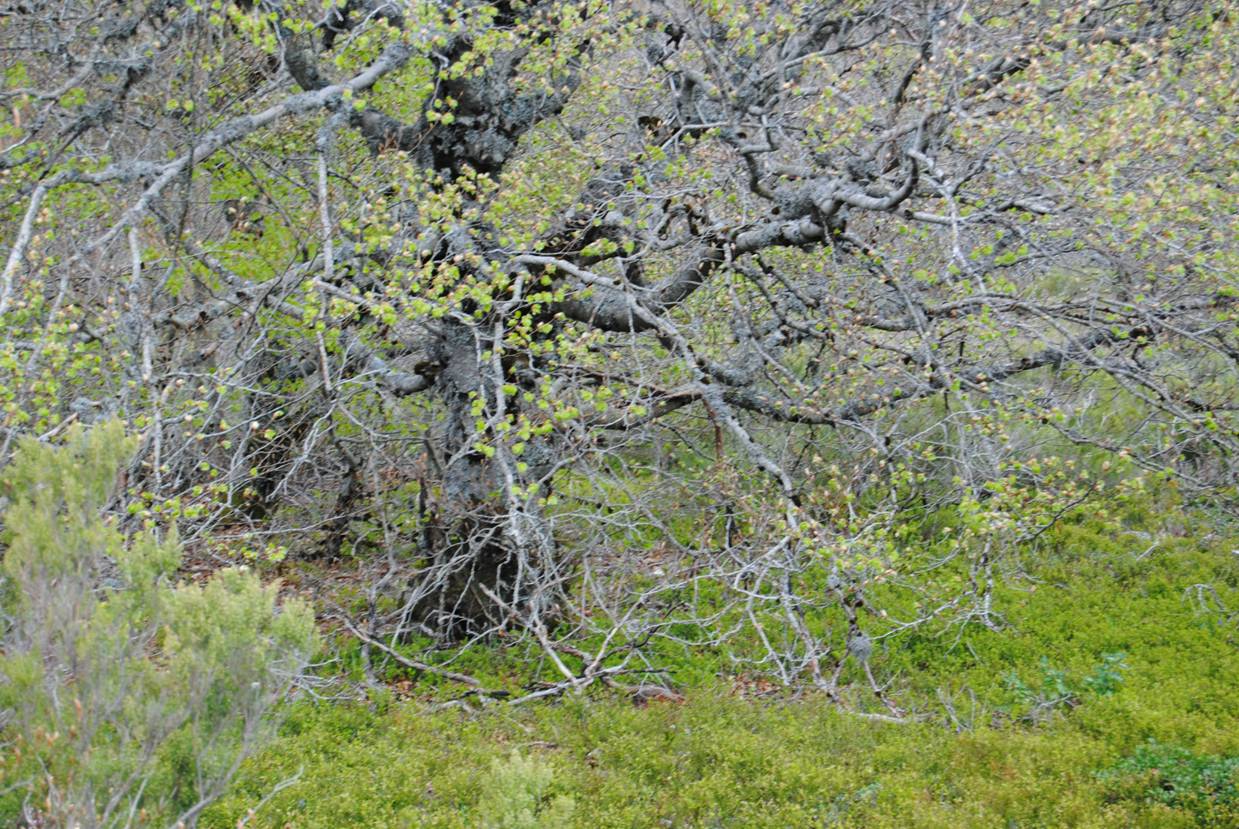 Melojar que conserva las hojas todavía secas en primavera,fenómeno conocido como «marcescencia