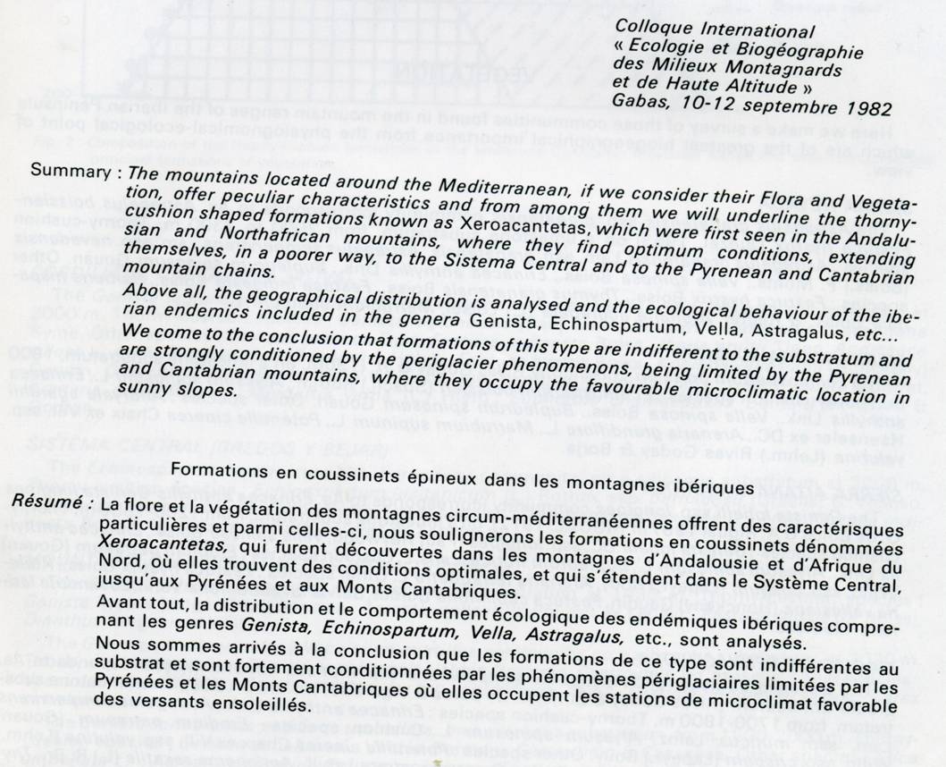 - . Biogeography of Spain.32-Xeroacanthic formations of Iberian mountains.7, 11 .17