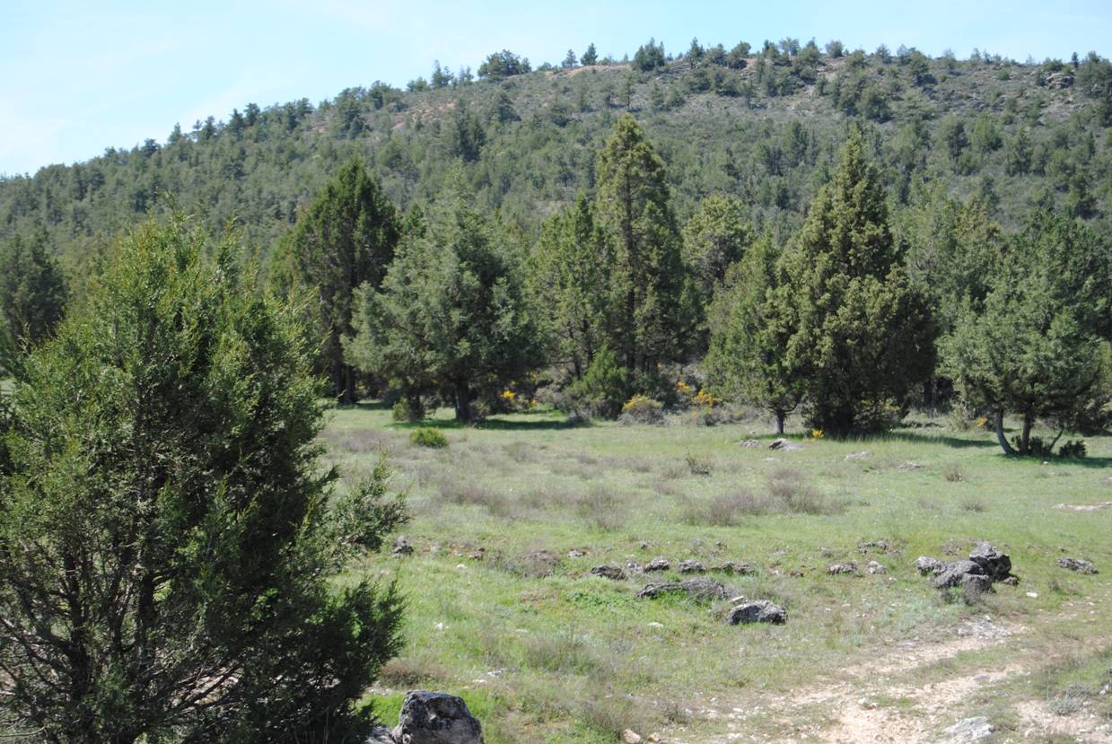 Entre el bosque clareado de enbros se desarrollan unos pastizales calizos muy apreciados por las ovejas
