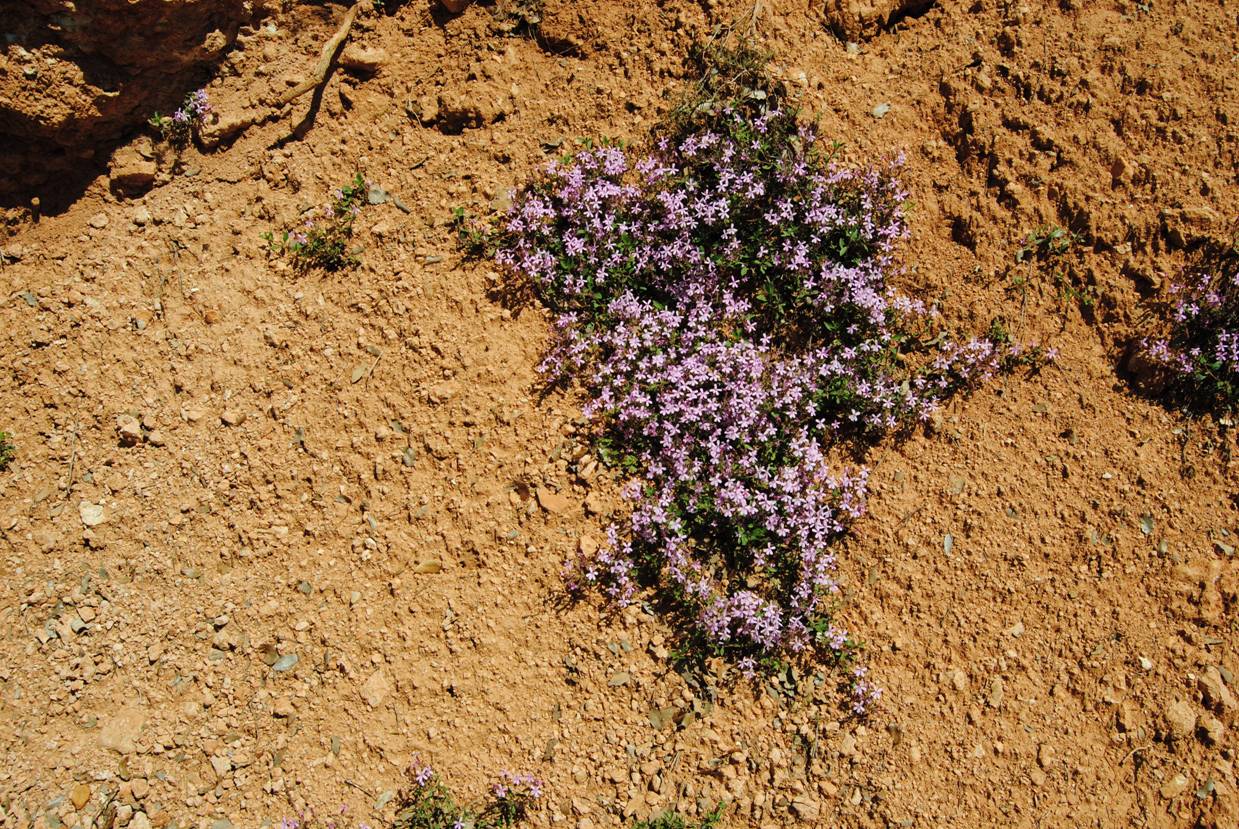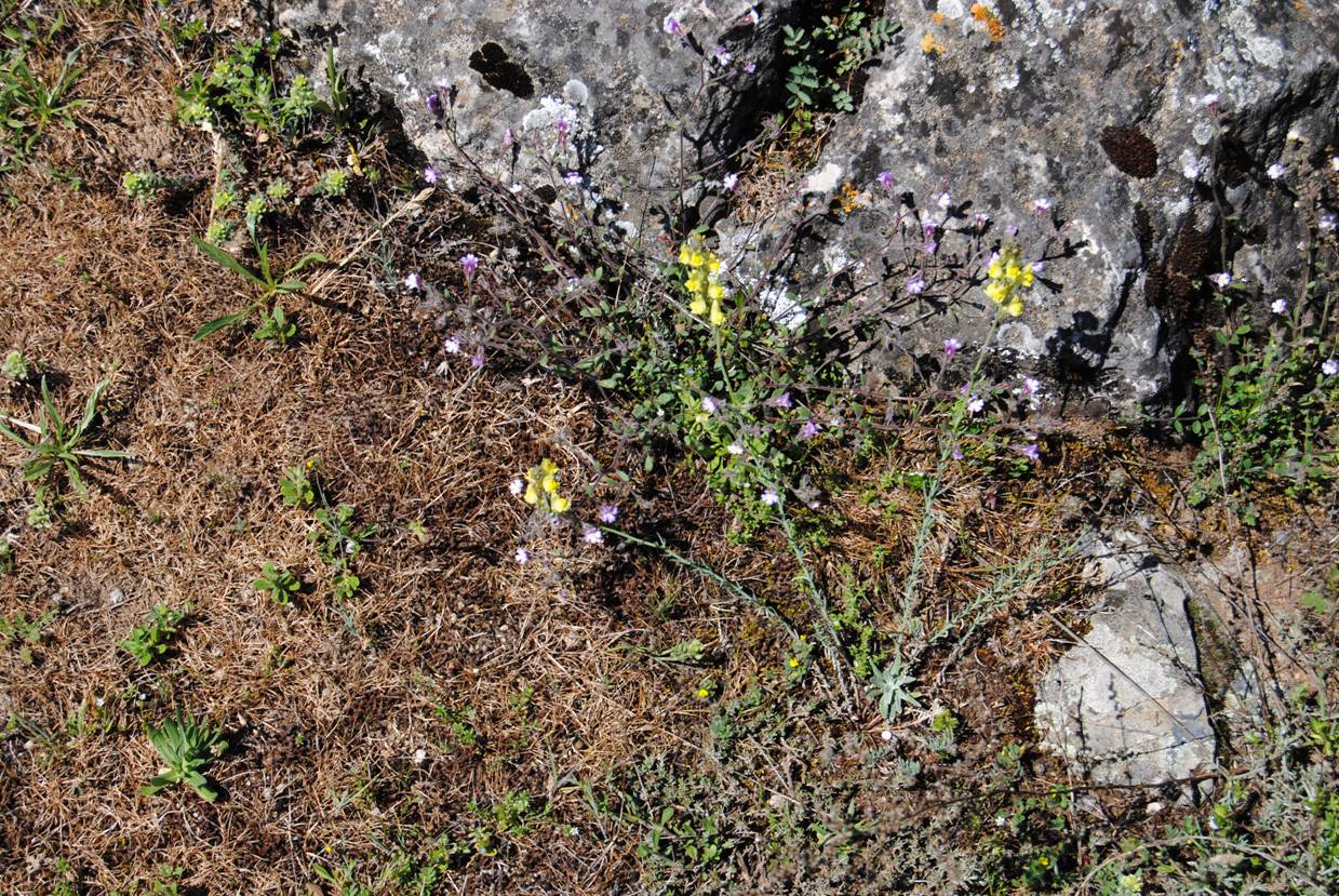 En amarillo linaria supina y en tonos rosados claros las flores de Chaenorrhinum origanifolium