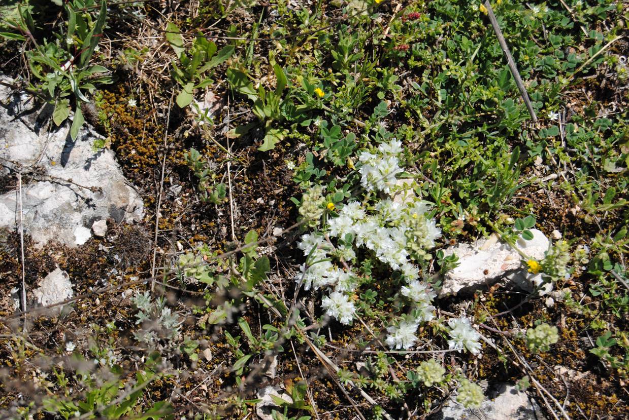 Aphyllanthes monspeliensis ,pequeñas flores azules entre el encinar