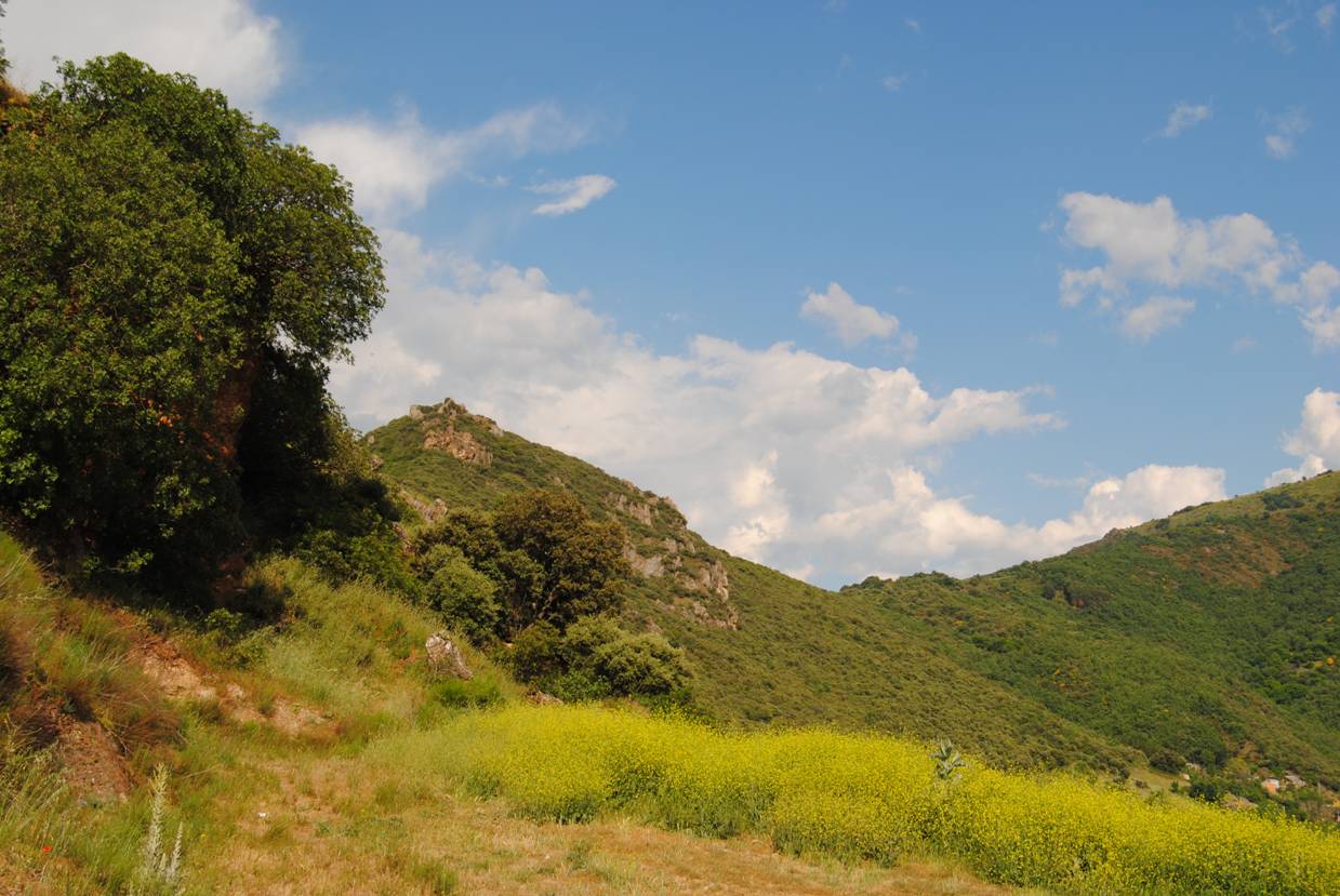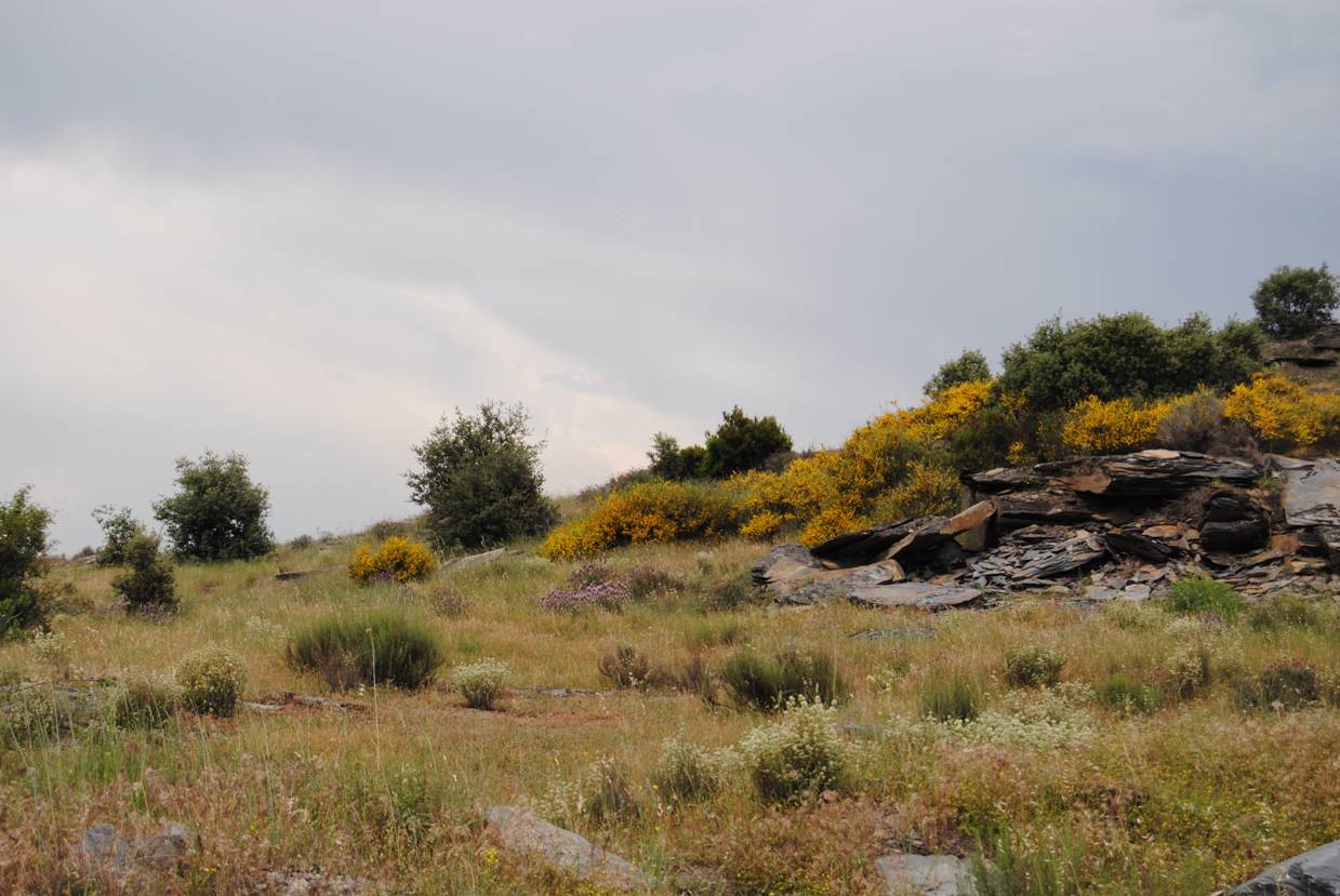 El paisaje está integrado por encinas que aternan con la retama de flores amarillas y el cantueso