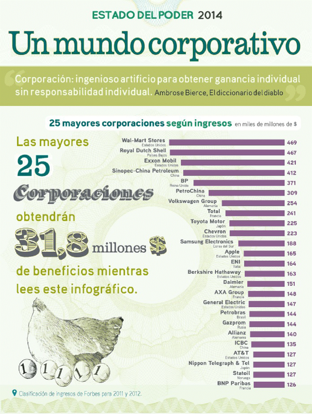 No solo se trata de su tamaño, su enorme riqueza y activos lo que hace a las TNC peligrosas para la democracia; también es su concentración, su capacidad de influencia que a menudo se infiltra en los gobiernos, y su habilidad para actuar como una genuina clase social internacional en defensa de sus intereses comerciales contra el bien común. Comparten un lenguaje común, una ideología común y ambiciones comunes que nos afectan a todos.