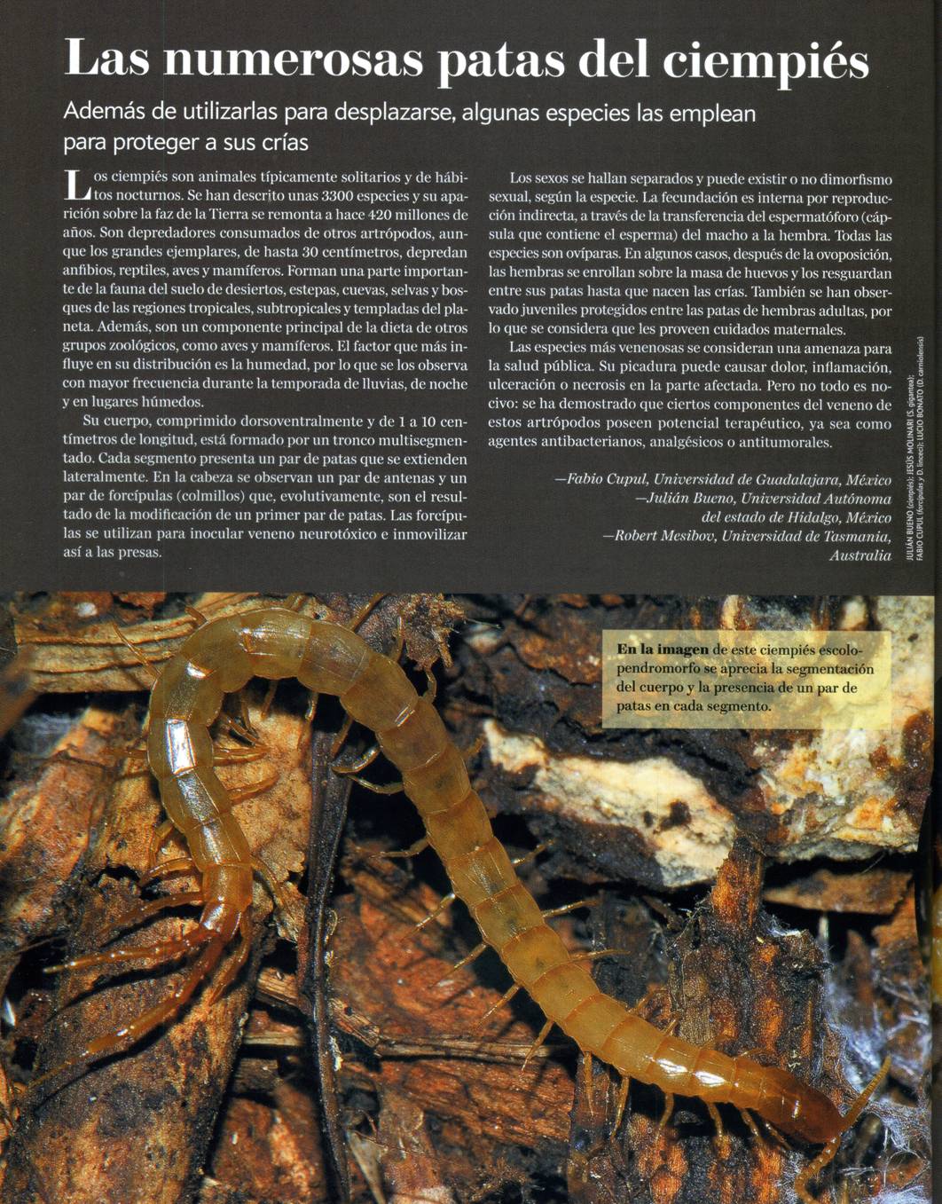 Las numerosas patas del ciempiés