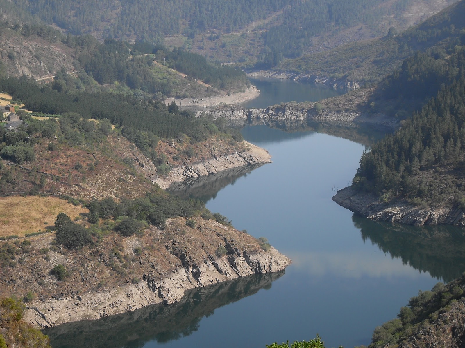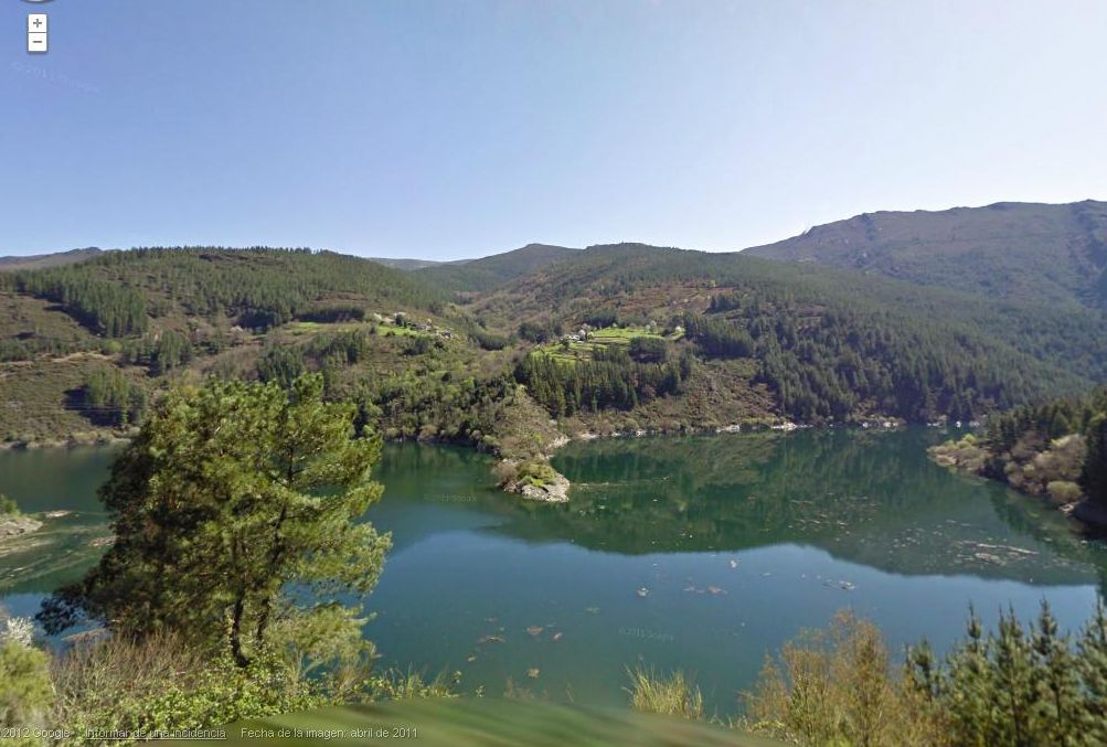 Muy cerca de donde en esta fotografia pone «embalse» es hasta donde se llevó navegando el horreo citado anteriormente, alli lo desarmaron y transportaron hasta Negueira.