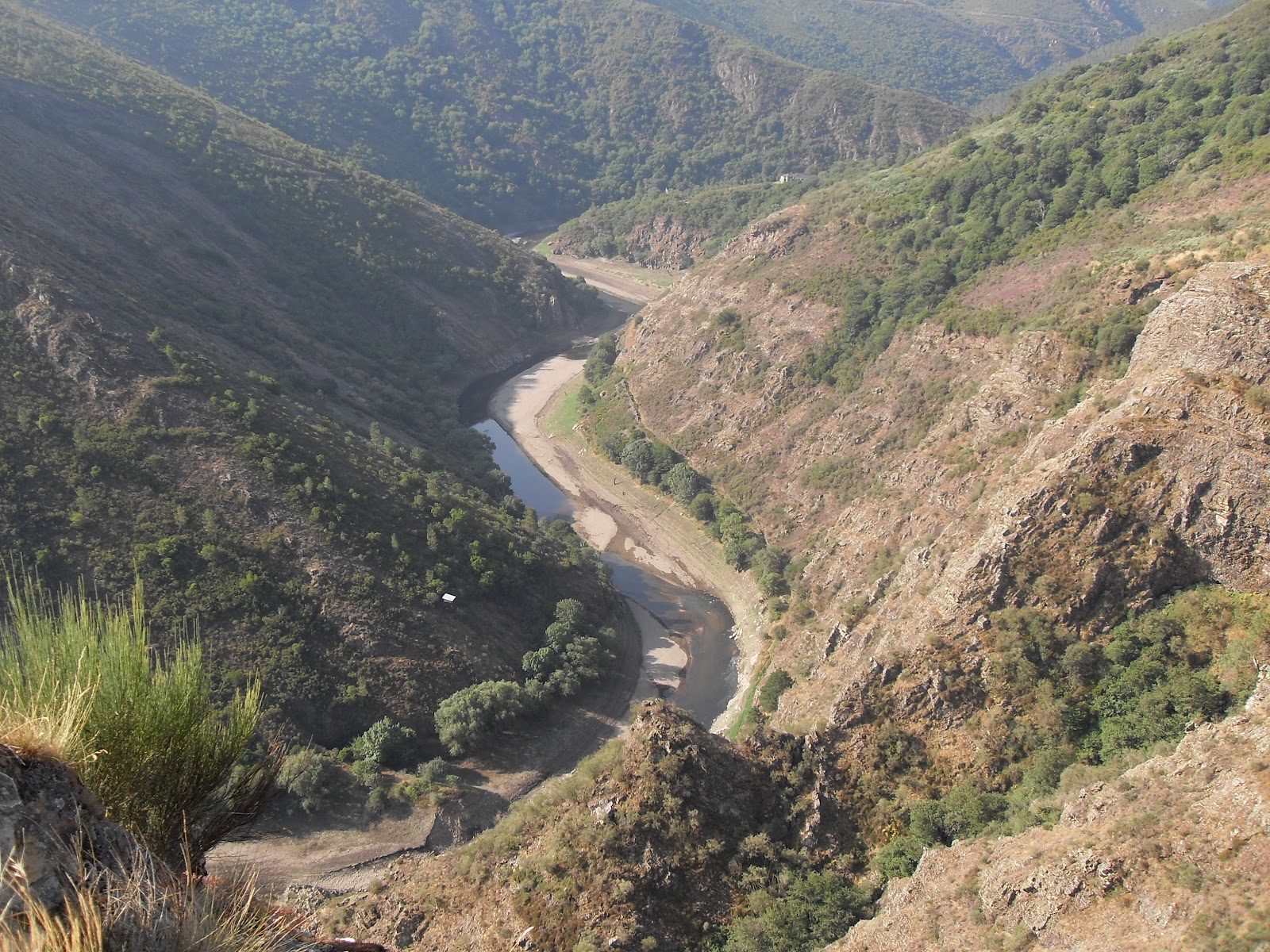 Embalse de Salime, algo mas arriba de Riodeporcos, (si nos situamos en la pequeñita elevación de terreno que se ve en el centro de la parte de abajo, delante está una mina de oro antigua anegada por el agua en la cual a veces encontraban algun trocito de cuarzo con pequeñas vetas de oro, y a la parte de acá de dicha elevación la otra mina que indico mas arriba que contiene murcielagos y poco mas, esta última parece tener dos entradas, pero en realidad una es una especie de aliviadero para que salga el agua en caso de inundación)