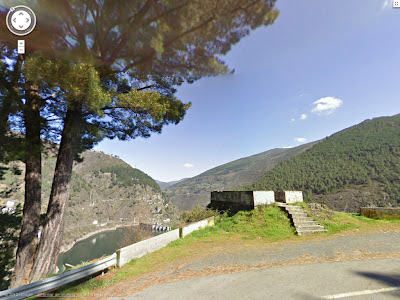 Tras visitar las instalaciones con politicos de la época, desde este mirador Francisco Franco dió por inaugurado el Embalse de Salime. en 1954 (fotografia desde Street View de Google)