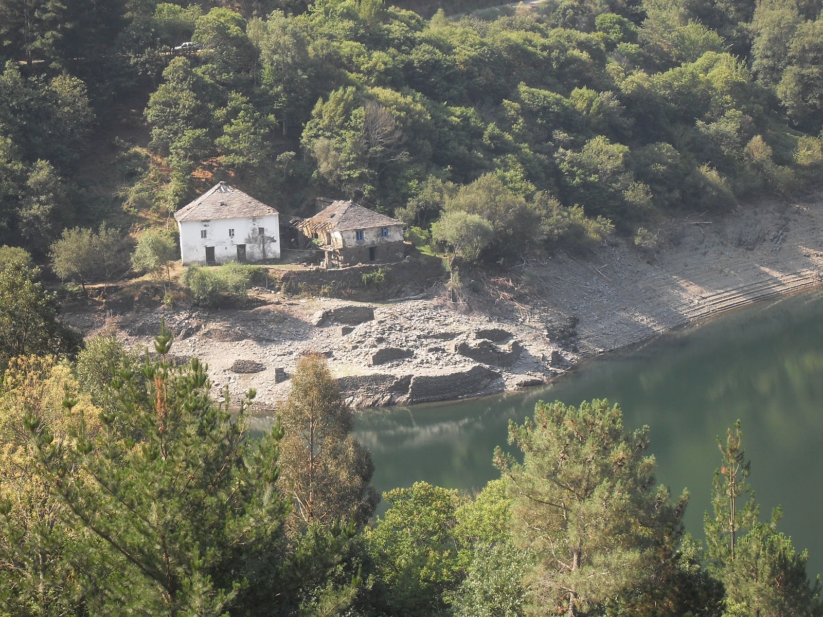 Estas son las dos casas de Barcela que quedaron fuera del agua (realmente era solo un caserio) Barcela tenia unos 12 Caserios. (a la izquierda de Barcela salia un caminito que casi junto al agua te llevaba a El Foxo y ascendiendo por la ladera, podias llegar al caserio de Castelo.