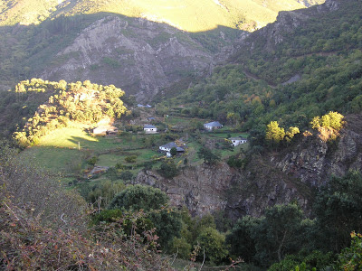 Aldea de Riodeporcos (arriba pero a la derecha de la fotografia, es donde se encuentra una de las antiguas minas de oro.)