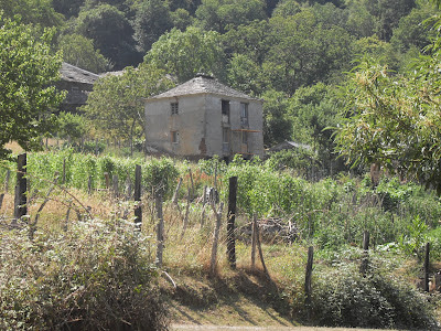 Los caballos, que se ven pequeñitos, abajo a la derecha de la imagen, estan en la Provincia de Oviedo, mientras que el caserio está en la provincia de Lugo, el arroyo que pasa mas abajo de la casa (El Aguazones) hace, en este sitio de límite de ambas provincias. El arroyo Aguazones, un poco mas arriba de este caserio, recibe las aguas de otros dos arroyos (El Arroyo Busbeiron y el de La Valía del Tronco)