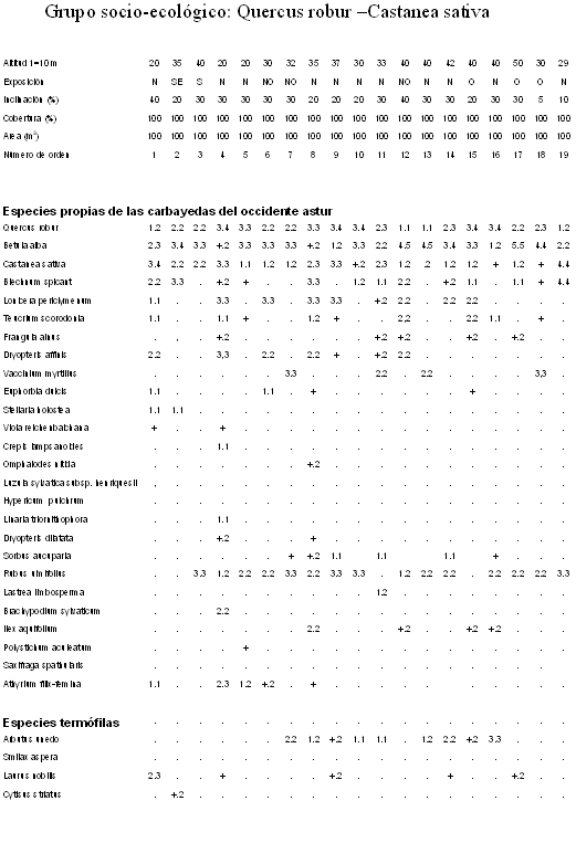 Se incluyen estas carbayedas en el grupo socio-ecológico: Quercus robur –Castanea sativa.