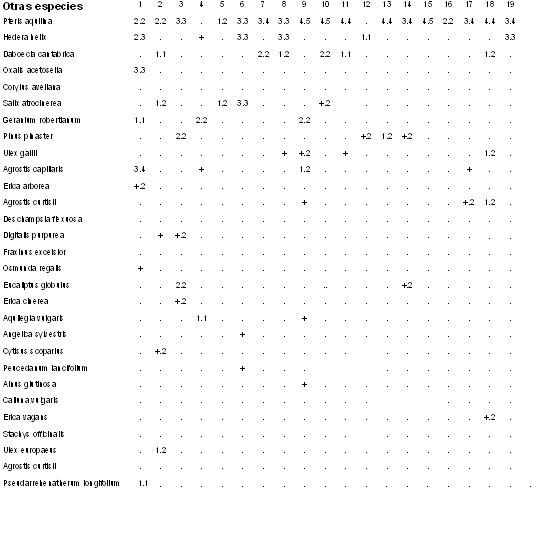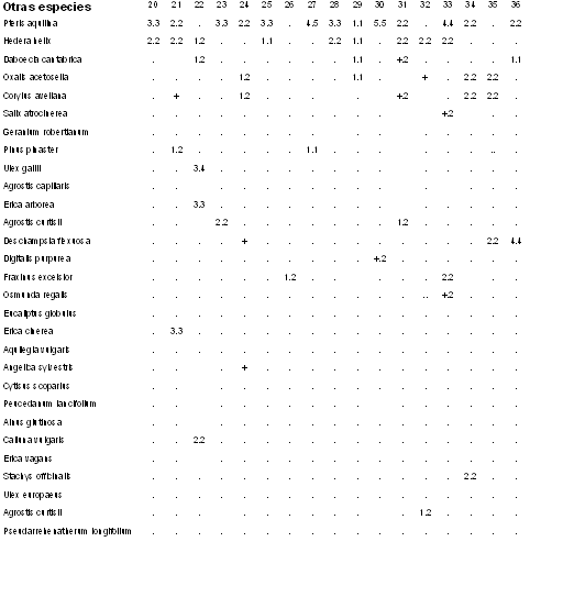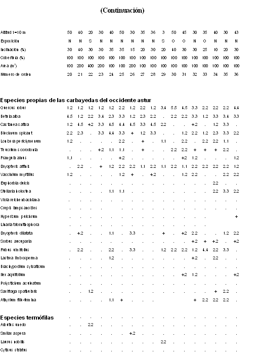 En occidente al ser el suelo acido, se introduce mucho el abedul, al que acompaña a veces el castaño. Como tengo muchos datos florísticos , ecológicos y fitosociológicos, aportaré algunos de ellos mas adelante. Estos datos, si nos permiten comparar las carbayedas del Parque H de Navia con las de la Sierra del Aramo., evidentemente