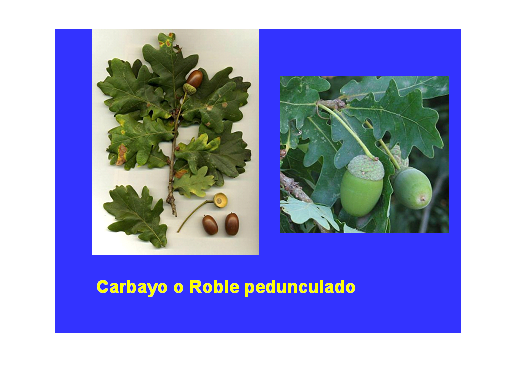 Carballo, Roble pedunculado (llamado así porque las bellotas cuelgan de las ramas)