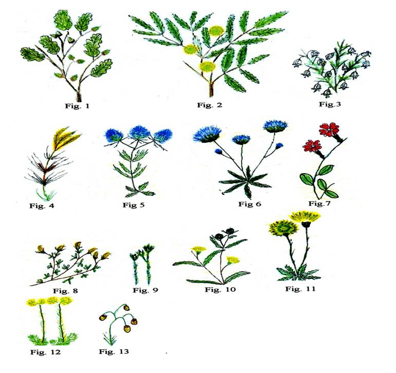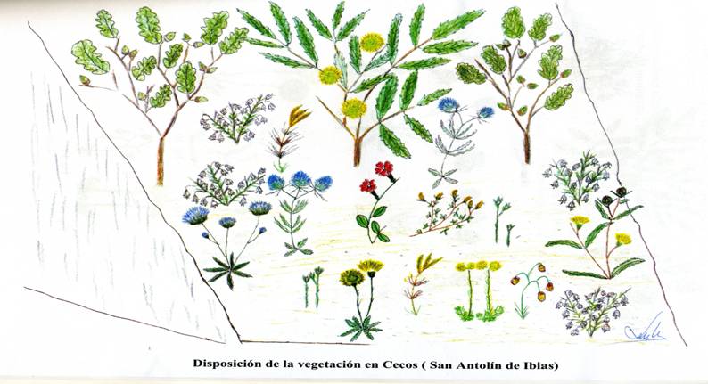 - Quercus pyrenaica, 2. Castanea sativa, 3. Erica arborea 4. Periballia involucrata, 5. Eryngium tenue, 6. Jasione montana, 7. Silene scabriflora, 8 Lotus subbiflorus, 9. Logfia minima, 10. Andryala integrifolia, 11.Hypochoeris radicata, 12. Sedum forsteranum, 13. Briza maxima