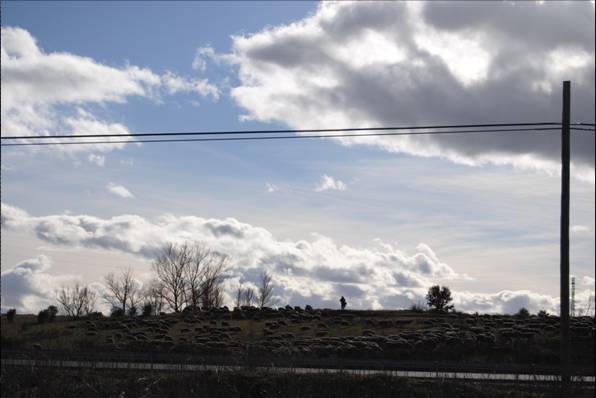 En un paramo pastor con sus ovejas, en el crepúsculo del día