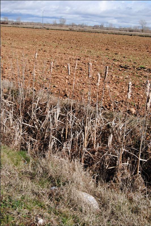 Borde de una acequia invadida por la espadaña ( Typha latipholia)
