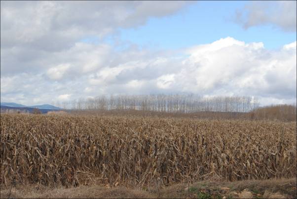 El paisaje de regadío, como veremos en las fotos tiende a evolucionar, como nos decía ayer un nativo de Región del Orbigo, los recortes en la producción de remolacha, van hacer derivar la producción de estas vegas a mono cultivos de chopos.