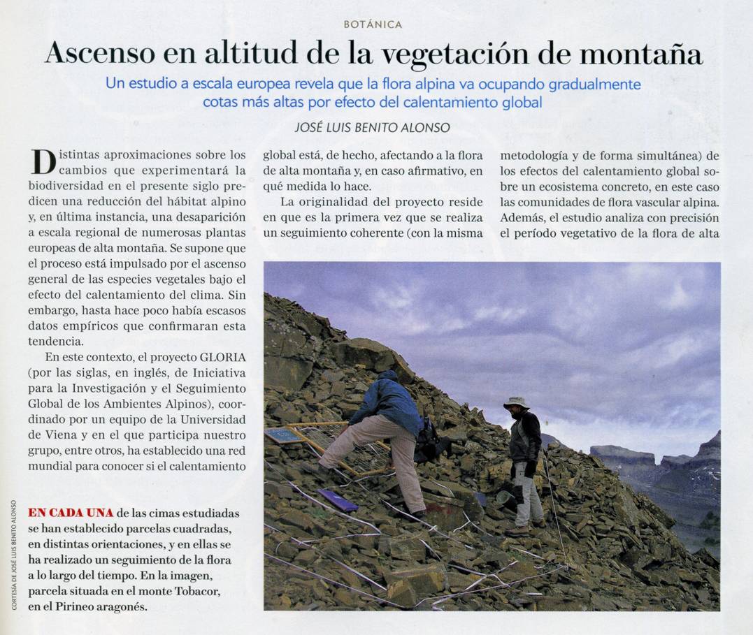 Ascenso en altitud de la vegetación de la alta montaña (Cambio climatico) 2014