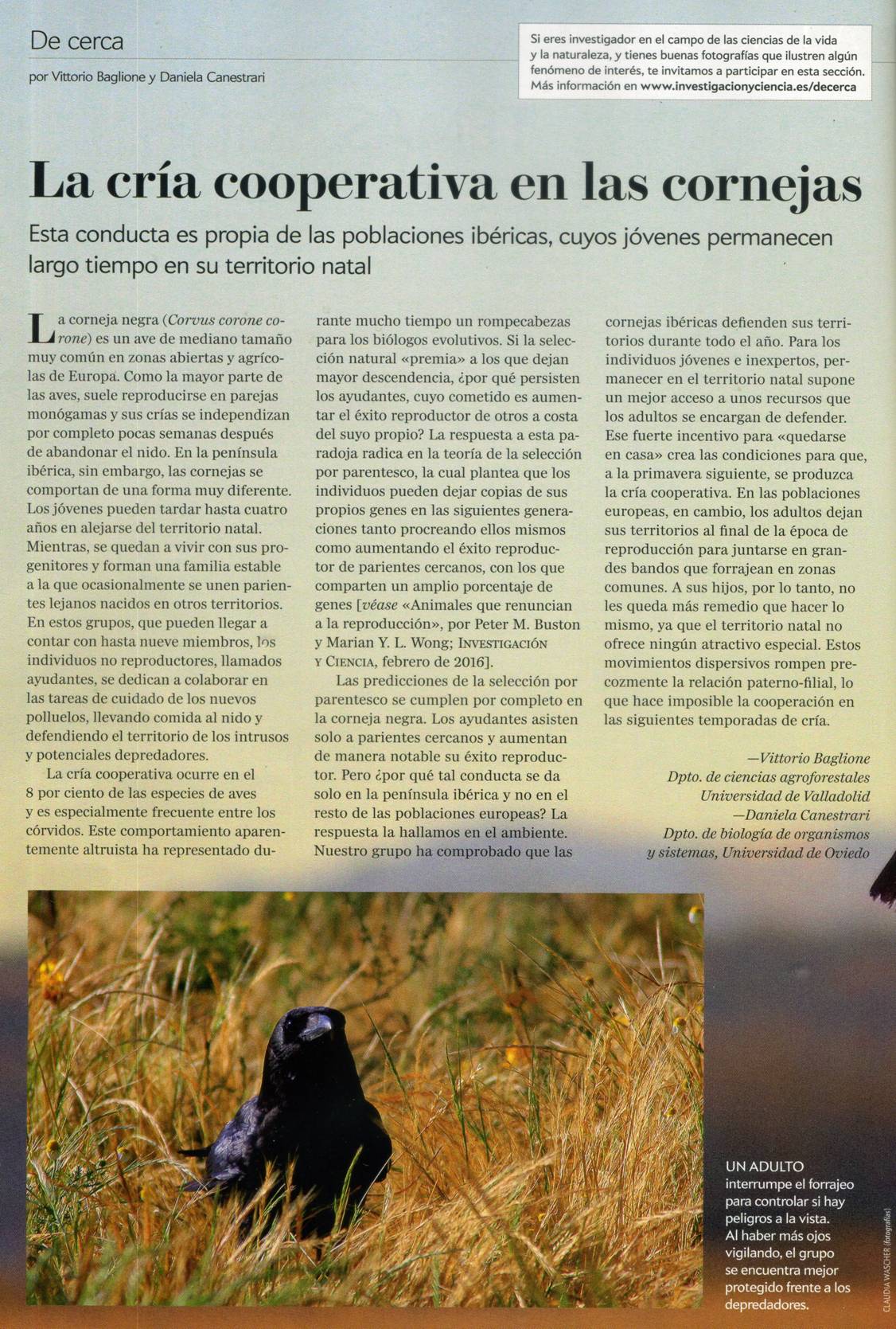 la cria cooperativa en las cornejas