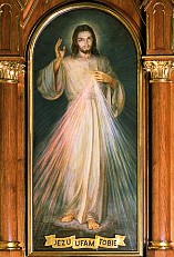 La imagen de Jesús Misericordioso, que también se conoce como la imagen de la Divina Misericordia, es una de las imágenes de Cristo crucificado y resucitado más famosas en la historia de la Iglesia y del mundo. Es una imagen extraordinaria, no sólo por ser tan conocida en tantos países, sino sobre todo porque su co-autor es Jesús mismo, quien se apareció a santa Faustina mostrándose según aparece en la imagen cuando ella se encontraba en su celda, en el convento de la Congregación las Hermanas de la Madre de Dios de la Misericordia, en Plock, el 22 de febrero de 1931. Allí Jesús le pidió que pintara esta imagen. Al anochecer, estando en mi celda – narraba en su Diario santa Faustina – vi al Señor Jesús vestido con una túnica blanca. Tenía una mano levantada para bendecir y con la otra tocaba la túnica sobre el pecho. De la abertura de la túnica en el pecho, salían dos grandes rayos: uno rojo y otro pálido (…). Después de un momento, Jesús me dijo: Pinta una imagen según el modelo que ves, y firma: Jesús, en Ti confío. Deseo que esta imagen sea venerada primero en su capilla y luego en el mundo entero (Diario 47).