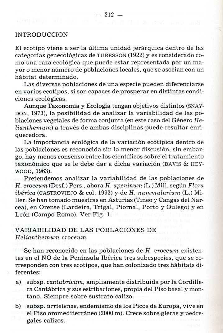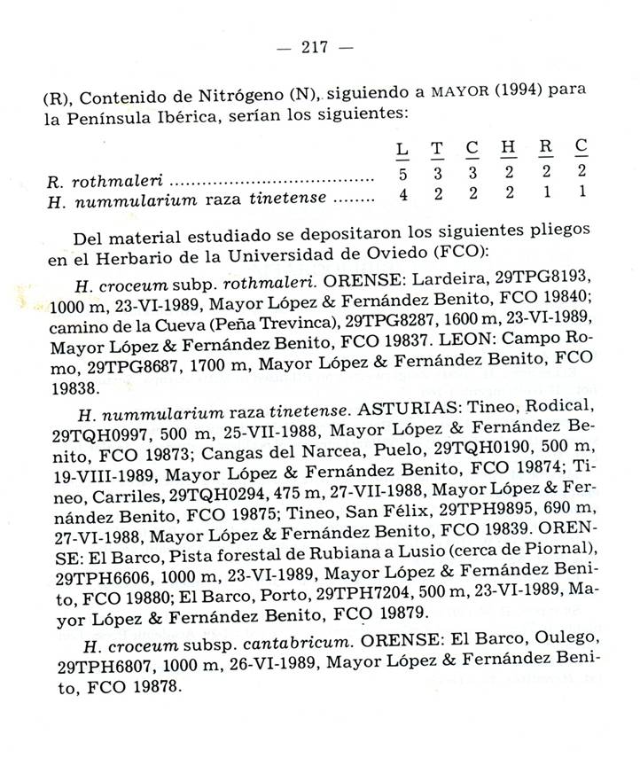 En los primeros momentos que Margarita Fernández Benito y yo lo vimos en un brezal acidofilo del Rodical, pensamos que ser trataba de una raza ecológica de H.nummulariun., y en realidad seguimos manteniendo la misma opinión.
