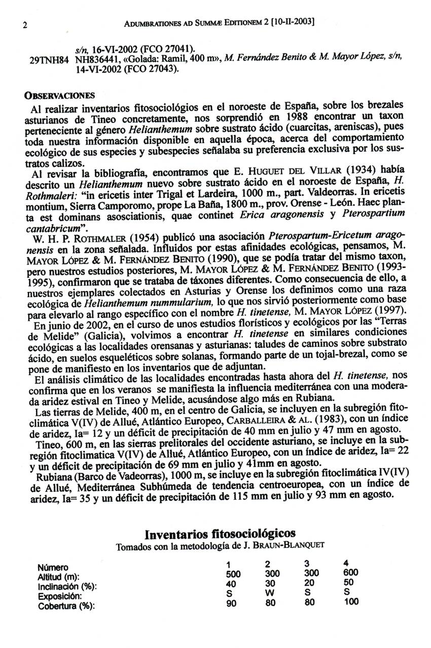 Helianthemum tinetense.The use of phytosociological methods in Taxonomy Research